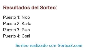 Lista de participantes: Karla , Nico , Palo , Coni.