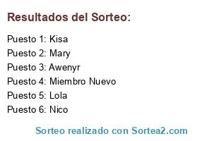 Lista de participantes: Awenyr, Lola, Nico, Kisa, Mary, Miembro Nuevo.
