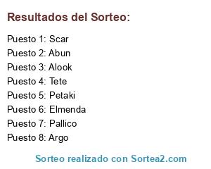 Lista de participantes: Petaki, Abun, Scar, Tete, Alook, Elmenda, Pallico, Argo, Sidvicius.