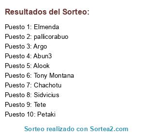 Lista de participantes: Petaki, Chachotu, Tony Montana, Argo, Alook, Tete, Abun3, pallicorabuo, Elmenda, Sidvicius.