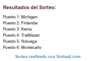 Lista de participantes: MICHIGAN, KENIA, FINLANDIA, NORUEGA, MONTECARLO, TRAILBLAZER.