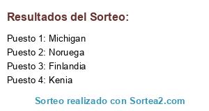 Lista de participantes: Michigan, Finlandia, Noruega, Kenia.