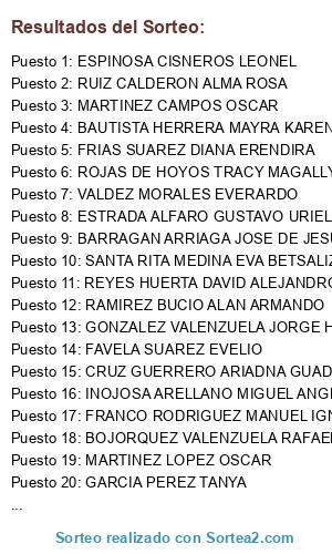 - Puesto 29: MARQUEZ SOLORIO DANIEL