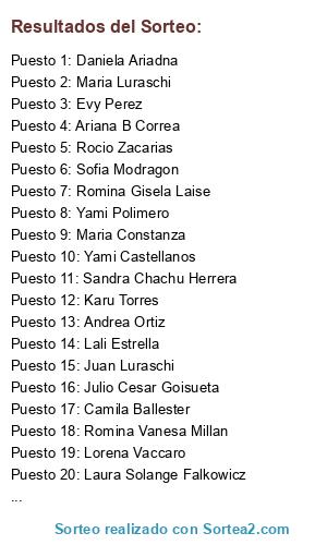 Lista de participantes: Yami Polimero, Camila Ballester, Marilyn Aviles, Victoria Lujan Aviles, Rocio Zacarias, Yami Castellanos, Soledad Berardi (2 participaciones), Daniela Palude (2 participaciones), Lidia Margarita, Jesi Garcia(2 participaciones), Marisa Sciombra, Flor Fiore (2 participaciones), Marina Marino, Meli de la Flor, Claudia Marcela Ludueña (3 participaciones), Julio Cesar Goisueta (2 participaciones), Solcito Festa, Lali Estrella (4 participaciones), Ayelen Debora, Romina Vanesa Millan, Maria Constanza, Cristian Pablo, Karu Torres, Elsa Beatriz Ortelli, Maria de los Angeles, Flor Pascuadi Bisceglie, Valeria Bonsignori (2 participaciones), Patricia Liliana Padilla, Ariana B Correa(2 participaciones), Juan Luraschi, Breendy Gularte, Sabrina Aguel, Jana Nes, Andrea Ortiz (2 participaciones), Romina Perez, Daniela Ariadna (2 participaciones), Lau Bronfman, Sandra Chachu Herrera (2 participaciones), Graciela Valdez, Griselda Carrizo, Carmen Navarro, Vane Lm, Flavia Ochanbela, Romina Gisela Laise (3 participaciones), Carli Sabri, Rosalia Mucci, Lorena Vaccaro, Daniela Casas, Evy Perez, Laura Reartes, Manuela Pedro, Laura Solange Falkowicz, Carla Glar, Roxy Rossi, Lizi R Porthe, Sofia Modragon, Maria Luraschi.