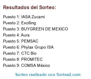 Lista de participantes: BUYGREEN DE MEXICO, Aura, COMSA México, Excilling, IASA Zucami, Phylax Grupo ISA, PEMSAC, PROMITEC, CTC Bio.