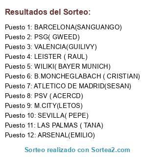 Resultados del sorteo: