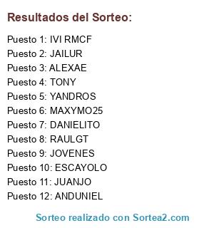 Lista de participantes: JOVENES, ALEXAE, MAXYMO25, YANDROS, DANIELITO, JUANJO, ANDUNIEL, ESCAYOLO, TONY, IVI RMCF, JAILUR, RAULGT.