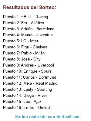 Resultados del sorteo: