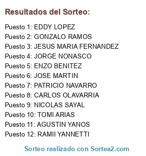 Resultados del sorteo: