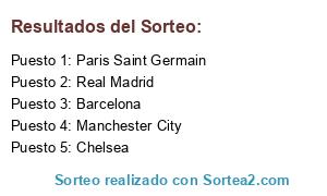 Lista de participantes: Chelsea, Manchester City, Real Madrid, Barcelona, Paris Saint Germain.