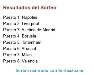 Lista de participantes: Admin(Liverpool), Titus(BVB), Otero(Nápoles), El_Rommel(Tottenham), Krogen86(Juventus), we1z11(Arsenal), Ivo_117(Valencia), vendettaguns(atletico), JairzinhoKO(Milán).