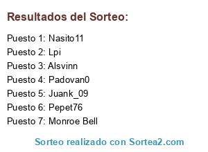 Lista de participantes: Lpi, Pepet76, Padovan0, Alsvinn, Monroe Bell, Nasito11, Juank_09.