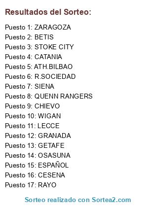 Lista de participantes: OSASUNA, R.SOCIEDAD, ZARAGOZA, ATH.BILBAO, GETAFE, ESPAÑOL, GRANADA, RAYO, BETIS, WIGAN, QUENN RANGERS, STOKE CITY, CATANIA, CHIEVO, SIENA, LECCE, CESENA.