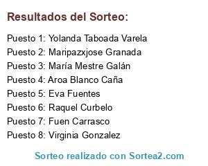 Lista de participantes: Raquel Curbelo, Vic Corsan, Eva Fuentes, Luisi Del Corral Barahona, Fernando Alonso, Sonia Méndez Rodríguez, Gema Jimenez Rios, Ivonne Alexandra Lobato Revelo, Gloria Llop, María Jose Ruiz Saavedra, Lidia Macías Arnaz, Maria Isabel Mayor Morell, Emperatriz Ferrer, Maite Albarrán Jiménez, Suren Vazquez, Rafael Ruiz Gonzalez, Toñi Gomez Vargas, Amparo Gomez Villoria, Paula Sosa, Sandra Nieto Herrera, Irene Ruiz Zúñiga, Myriam Martín, Paqui Gonzalez Su, Yohana Rodríguez Valentín, Fuen Carrasco, Ester Garcia Quintana, Yolanda Díez, Josefa Ramirez, MChús Alcaraz, Maria Fernandez Robles, Inmaculada Tovar Martin, Debbie Martinez, Olga Ansias Palomares, Manuel Caride Conde, Encarni Ruiz Robledillo, Mari Ríos Toledo, Esther Espinosa Martinez, David Soria Calero, Lourdes Melero Pastor, Maggy Rosillo Balabonzo, Rosa Díaz, Karen Coello, Lorena Rubio, Eva Martin, Maru MiDesenchufe, Lourdes Perez, Lucia Garcia, Maria del Mar, Toñi Perez, María José Gómez Benítez, Miguel Ángel del Águila, David Carmona, Rocio Mateos Dominguez, Martha SanGa, Flori Serrano Cortes, Maria Pilar Pascual Tomas, La Bruixeta Bcn, Carolina Herrero Ahedo, Gema Castro Jiménez, Lidia Iñigo, Mayte Perez Quesada, Ana Gonzalez Galiana, Judith Campos, Nieves Rio Cabrera, Nines Rizitos, Raquel Capilla, Noe SG, Sonia Sevida, Mónica Rodríguez Hernándezz, Tomás Hernández Giménez, Mar Hiruelas Bautista, Arantza Calleja Rabaz, Miguel Griñan Garcia, Yusmarie T. D-Díaz, Melva de Diaz, Maria Jose Martinez Escobar, José Luis Delgado Viedma, Halcon Mercedes, María Lezcano, Jose Fernandez, Maria Marcaida, Mabel Navarro, Amaya Gutiérrez Fernández, Macias Leonor, Jamari Lozano Baraza, Mari Carmen Plaza, Jimena Boé, Sonia Gil Gonzalez, Esther Hoyas, Pedro Rivas Rodríguez, Yaiza Abreu Prado, Ana Maria Gimenez Marinez, Marta Korpas Korpas, Airam Tavio, Maria Dolores Menendez Bravo, Lore Segura Sabogal, Lorena Villalba Martín, Víctor Alija, Montse Piñol Casado, MCarmen Serrano, Alma Rovira Crisol, Carmen María Aguilera Prada, Marisa Pradillo Pradillo, Rosa Endrina, Eva Fago Aznarez, Almudena Lucas Herbias, Mari Jose Chanivet Sanchez, Mari Carmen Écija, Manuel Hierro Tobalo, Judi Glez, Ana Belén Pedroso Laso, Pruden Lopez Peña, Laura Ferrer Aranda, Monika Martin Monce, Saretta SanSan, Brenda Marrero Maestro, Anoush Ka, Amalia Miralles, Alejandra Muñoz, Isabel Milla Alfaro, Mari Carmen Santaella, Inma Ortega, Raquel Cayuelas, Patricia Campos, Núria Batllori Carreño, María Justicia González, Anita Laullon, Aníbal Pouso Lopez, Irene Rosa Peña, Amparo Aros Aro, Sonia Orfila Sbert, Marta Pleite, Isabel Villahoz Renedo, Aroa Blanco Caña, Connie Annette Malave Fernandes, Josefina Rivas, Paqui Alonso Carretero, Maria Del Mar Jimenez, Rocio Fuentes, Itziar Emperador Moreno, Cristina Alonso, Ana Belen Lojo Sanchez, Yolanda Aparicio Jerez, Mari López Requena, Ana Isabel Alfonso Carreres, Silvana Gopes, Salva Moreno Aliaga, María Jose Juan Coronado, Maria Guerrero Bayon, Miriam Cabo Gonzalez, Marina Gómez Esteban, MaikaHeart Beats, Itesa GS, Ana Maurel Castro, Lucia Sánchez Glez, Jinny Martínez, María Ponce, Helena Del Pozo, Maria Silva, Miriam Pino Ramos, Ioan Dan Savin, Marta Muñoz Castro, Margarita Higuero Ruiz, Karina Bayuelo, Maria Jose MJ, Beatriz Tenza, Sandra Tur, Isabel Redondo Martin, Vanessa Vazquez, Gema Montejo Raez, Vicky Bifet Sanz, Núria Iralbril, Carmen Cañadas, Leo Dominguez Cerrato, Maria Del Mar Fenoy Viñuelas, Ezequiel Ander Egg II, Bea Ramos, Maria Serrano, Teresa Lebrero, Sofia Gago Montero, Sara González Vázquez, Donna Sheridan, Lourdes Ruiz Mateos, Esther González Fernández, Mónica Rodríguez, Isabel Lopez, Läu Dv, Isasakki Fernandez, M Rosa Lázaro Pinela, Noelia Rodriguez Olivares, Elena Verdú Montes, Mariam Soria Dos Sicilias, Encarni Conesa, Raquel Sebastián Franco, Gloria Serrano, Silvia Linares Murillo, Alba Cabrera González, Mari Carmen Vallés Soler, Nati Serena, Lidia Montesinos, David Capel Catalán, Marta Martinez, Phaula Jimenez, María Begoña Díaz Hernández, Pepe Garcia Davila, Soledad Moreno Piri, Sonia Ceacero Fornells, Vanesa Fernández, Marian Prado Alvarez, Carmen Ceyzeta, Noemi Villafanes Fernandez, Veronica Silva, Elena Sifre, David Loranca Gómez, Familia Alvarez Núñez, Elena Lucas, Verónica De Jacinto H, Tania Gomez, Laura CE AR, Sandra Rivera Garcia, Maria Jesus Ruiz Jurado, Ana López-Quiroga Puig, Elena Gtrrz, Marta Marina, Isabel Carretero, Vanesa Listan Listan, Marina Cornejo Sánchez, Cande Barba Jimenez, Ainara Adot, Mercè Lluna, Yazcris Pirinola, María Isabel Sánchez Siles, Antonio Cañamero, Blasi Ortega Lara, Rocío Rivero Macía, Sonia Navarro Dominguez, Lorena Bcn, Maria Jesus, Veronica Antuñano, Luis Sierra, Raquel Navarro, Cristina Gálvez, Ana Orenes, Monikadas Garnu, Isa Puertas Sánchez, Teresa Gonzalez Fabian, Estela Cid Núñez, Natalia Lindo Donet, Keniia Sanz, Ismael Profitós León, Irene Marchena López, Maria Rubio Martin, Rosa Jorge Bravo, Manoli Barrera Fernandez, Patricia Pascual, Peny SJ, Mercedes Gallego Herrera, Carla Aguilar, Teresa Navarro, Susana Muñoz González, Mar Ina Pons, Charo Torres, Silvya Garcia, Fermin Gonzalez, Rosa As, Toñi Lopez, Loli Muñoz Valverde, Beatriz Ruiz Lesmes, Antonia Vega Bustillos, Lidia Galán González, Neus Rodríguez Cortés, Cris Aparicio, Javier Escribano, Mayte Borras Quiles, Maria Jose Leiva Cruz, M José Pérez, Monica Nieto Gonz, Hermy Valdes Enriquez, Paky Pmc Mimi Mo, Catherina Mederos Hernandez, Manuel Alfaro, Nu Chogar, Eva PeBe, Cristina Jimenez Pantoja, Alicia Cuadrado Fernández, Cruz Capdepon, Rocío Jiménez, Vanessa Vera, Begoña Aos Llorens, Mayte Ovalle Soto, Ana Tejeda, Florian de la Flor, Laura InBianco, Aurea Capita Carmona, Cristina Gil, Encarna Huete, Pilar Panadero Muñoz, Cristina Pérez Ortega, Adolfo López, Laura Arcediano, Sonia Gv, Nieves Garcia, Vanessa Nuñez Marin, Maripazxjose Granada, Laura Bernárdez, Poderosa Mal