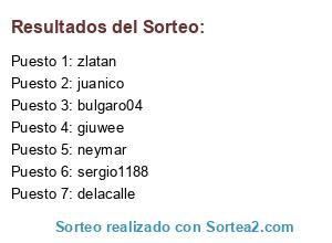 Lista de participantes: bulgaro04, sergio1188, neymar, delacalle, juanico, zlatan, giuwee.