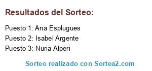 Lista de participantes: Patricia Jimenez, Francesca Perez, carmenfrancis1, Nuria Alperi, Noelia Garcia, Tana, Clara sancho, Mª Carmen Calvo, Lola Enguix, Loles Camacho, Mariola, Marisa, Encarni Martinez, Ana Cuenca, Adela, Antonio, Lucia, Amparo Nadal, Noelia Asensio, Carmen Soto, Isabel Argente, Maria Herrero, Ana Esplugues, Natalia Cuello, Neus Garcia, Maria Mozalbes, Loli Cabanes, lorena_83vlc, Carolina Más, Maite, Paula, Maria Bragado, Marta Moll, Mar Naval, Ana Diez, Sabina Perales, Magda Ferrer, Lourdes.