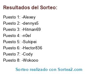 Lista de participantes: -Cody, -Hector836, -n0el, -dennys5, -Alexey, -Sukipei, -Hitman69, -Wokooo.