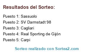 Lista de participantes: SV Darmstadt 98, Cagliari, Sassuolo, Real Sporting de Gijón, Carpi.