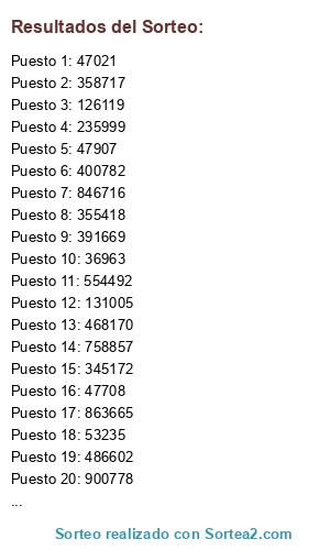 Resultados del sorteo: