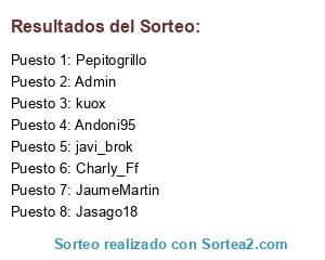 Lista de participantes: Jasago18, Andoni95, javi_brok, kuox, Charly_Ff, Pepitogrillo, Admin, JaumeMartin.