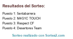 Lista de participantes: Desertores Team, Respect CF, M4G1C TOUCH, 5enlabarrera.