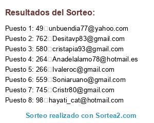 Lista de participantes: @rdelgado, @marisa_ollero, @Adriana_chico, @pulseracreacion, @Beatriz-ledesma, @marta_mitjans74, @dlcarol_81, @Malilo20, @soraya.v.g91, @iria1982, @flaquita_160, @galce289, @Ivonne25bcn, @yolandabaudet, @Requetilla, @meritxellpueyo, @ana_olga_martin, @mariasolete83, @jess_diablilla, @ravenfalmar, @estherlozanogarcia, @neverbe1, @toi_79, @soniadll, @isabelpolorod, @lucperher, @gemafontenebro, @Sta79, @anamaria.lopezmunoz, 30 Anabel,a@hotmail,com, @smuniente, @nurietasmir, @maryggl, @ird999, @nazaret_rod, @Paola.ruro, @cano_trillo_rocio, @claudiamodol, @Kirayirka, @barbiruchi, @marpetalo81, @Miamor_21, @Irenuela9, @Iuski20, @Ingrid.navarro.1993, @Crissg, @Virvalencianoduran, @Silvia_gc180, @unbuendia77, @chiorobio, @Sarai_399, @Mamenbl, @mariabiologa, 54 Ruiz, @macacostabal, @Eva.guillen, @joel.yolanda, @cmiftimie, @sdelgado, @sservera, @monicavinas122, @bfvillanueva, @irenecasillas23, 64 Rodriguez, @veronicariosfernandez, @monirentero, @andycostache, @mperez, @lunazul992000, @Laly_ht, @mpernasr, @wassilakalaidji, @lorenacardenas25, @alemuah2, @Cristinagarciasj, @bershka73, 77 Yolapont @hotmail.com, @marisaines05, @ici.barbero, @veroms3004, @reinasport, @elalm76, @Olga.solfra, @Amina_marbella, @Raquelsevsan, @Kathy_bcn_16, @Vanesa24madan, @Mercedes_hg, @Cpucheromera, @estel_custoja, @elisajesus, @daniris2285, @Gara_mm, @ady_aly_18, @Miriamyague, @Vane.dm, @Violeta.nch, @hayati_cat, @Escorihuela_5, @bebemanano, @bruizgarcia, @Marian77777, @eduardoyepezvera, @martukacm, @Suneco22, @dianagordo81, @ivona_i, @soniajimenezp, @analiapino48, @biancamadalina29, @lasstt, @dama_tusky, @arpior88, @Tlopez_78, @andreita_estfita_, @Gemaramos1983, @Ruthututu, @pady31, @sara_morenaza, @e.vela14, @postibea, @Pely_1975, @margamacas, @markinn25, @anna_tb81, @nuriafebrero, @Maria.alvares8, @myriamrodriguezfernandez, @crisymp, @Lauraparraga02, @flia.feliz, @mmarcohdez, @silviamatilla79, @eligalvez, @joel.yolanda, @Cris_30_82, @Fernancarol, @graupalafox, @Sandraidarraga0228, @jcassie_lomeda26, @vyol_eta, @isaguijarro, @analuciapm, 144 Reyes, @lauri_brus, @mariabeltranadsuara, @andreaguardia_23, @A_blanco_nieto, @guada.bustamante, @Lmatellanes, @veronicarocio16, @95_sarita, @Ana.bengochea77, @Beatrizmorenobravo84, @Katiadrazdova, @babilonia27, @s10gsusi, @andriusind, @kirenia25, @garciaguerreroesther, @Tamara.rafael.salgado2, 162 Soleyiker2@gmailcom, @monigar23, @paki_mr86, @Monpil, @Sugarr_82, @estherlozanogarcia, @Luixina, @Yhorenia, 170 Perez, @Marydj13, @nenasanc, @susanarusmedina, @Cony100, @andreaguardia_23, @yonofuisusan, @Virgilaxkry, @jivon, @nuriagargoles, @Esthersacristan, @beatrizdetoledo, @carolinaariza, @cordobesvalenciabeatriz, @paque, @Florangelsorianosuero, @Raquelalonsov, @cestevalonso, 188 gadaureos @hotmail.com, @marpedrero, @crisjesstg16, @maryenfer82, @joraba79, @Martaripe, @Evaferlon, @goizmartinezlanda, @elberethh, @mariarroyt, @nicole.nmcv, @Bettybury, @orejonperez.leticia, @gloriaposibanez, @pikapikaia, @lore.simon77, @m.angeles_gr, @nausika1977, @Maria236, @Almudena_lopez, @Batrichejb, @ivalidpapis, @Marbasiber, @Mspg1993, @Almuiii, @gabthe, @Patriciarf, @fernandacarvalhosabcn, @vanelandi, @Sireclaudia, @monicasadiz, @carmenpink7, @march2936, @alejandrasol236, @terecarrajo, @jta.yuyi, @Taniaescolante, @Murron1980, @silviafrml, @Carlosmanuelmp81, @vanessadelcampo, @Siselo75, @vanesavelayosrodriguez, @silviasanz20n, @Ivanycris09, @ggema22, @Ababelenabril, @Jg13452, @Pmontoya_s, @Aida.arnaiz, @crysoly, @Iselacruz_22, @lunacecilia9, @step.cuevas, @soriavargas1, @betthyms, @irenecatalan84, @carolina, @lorenabalmisa, @marta.vicente, @F.wa2007, @nuvico06, @ter76, @pakoto77, @Vil_ps66, @pgalan22, @Natalia.gutierrez.cruceta, @acatuponce, @mmaciasma, @pati_gve, @Rortuno2, @Noe_lia84, @rosanasotomoreno, @Shei_jv, @juanarroyopa, @lrodriguezaraya, @Anadelalamo78, @Maarlenn16, @Ivaleroc, @Yan_marco_20, @elisa_maya, @lmlopezrojo, @Spiscis, @evademc, @ana_gn83, @marymm-30, @gemmasimoneta, @babycerpa18_19, @anajosefavicoalcaina, @rebecamillan, @Mj10_2007, @mbascourt, @eicc8, @margasv1973, @claudiasus, @sanchezfernandezcarol, @lauralazaroalguacil, @cbra_20, @dankampm, @Lidiaortizmorales, @mapivica, @eva_7_vl, @Estefi.orellana3, @rocio_mil, @patriciahernandez80, @miraspall, @eva_toledano, @gpg1988, @Anita_laprida18, @banu, @Mestresmr, @yolandapinillamartinez, @ninomiri1286, @mariacond, @Nosoycomestible, @Piolina_1183, @manoli_castillo, @beatriz_ef, @ana.flores.audera, @crismp, @Luciacrodrigo, @Vgladis16, @Lalaortiz1979, @Rodrigueztouzon, @ananova, @ismael.munoz.garcia, @km.gm24, @cristinacamacho33, @Lidia_xessi17, @emnestevez, @Marimore25, @Cosita9752, @estherrod61, @xena33333, @Ngopazo, @chechu-live, @javigalu2, @rociodemorales, @nathaliemontalvovaldes, @Coronel.tania, @Sandra.sanchez.mel, @julissabar, @Piolinllorente, @Lullana11, @ird999, @bsmatalobos, @mariadelluc_1990, @Raquelgarcia.rgr, @moralesfernandezrocio, @juditribe, @amalia_0784, @eva.cavero, @Rbklunatik, @sikaydavid, @cdelpozomoran, @yukana, @aitana44, @Rocio.amena, @joraba79, @lauleonm, @hannahnit, @laia.luis.p, @Teo_romero1, @Stephang1440, @cocoxely, @susineron, @meritxellmv, @nath1103, @mirella.caldero.2305, @maribelhuelves, @msolisrodriguez, @Soraya_sg, 360 Camuñas, @aminitar, @rosamasana78, @Angycabrerizo98, @montse_feliu, @Sandramicor, @Jesica_0903, @veronica.pituca, @cristi_sanz_agudo, @voyatrokel, @ancarichy, @Marybel.angie, @yury2590, @Lmatellanes, @miriamorea, @Francisco.javier.serrano, @deyi.93, @beatrizprados1, @rogomar81, @marinavf26, @Anaysanme, @Sh.puente, @malenaraspa, @judit.herrera, @beatriz_arganda, @mavarna, @angeletess, @Nogala8, @allyrealw, @mcasamayorg, @Biibii.pm, @Abdellah.maryam, @loykomail, @cintiarolda82, @Laia.soler.capsada, @rous_padi, @laura_heras251, @montsemoli79, @Yactedigo, @vaneskeit, @sirenita12280, @rocioperancholopez, @OLGA.OFF, @elena.c.l, @Brujitasweet, @cristina_romero1982, @nata1984bd, @evelyn.meche, @veronicarevilla, @Crodrigosopedra, @sonia.c.p, @imen_88, @Danabcn, @animacio