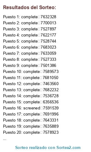 Este sorteo ha sido certificado por Sortea2. Sortea2 garantiza que: