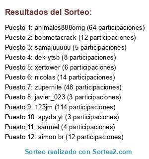 - KEY VIDEOJUEGO SORTEO ENERO!!!: animales888omg (64 participaciones)