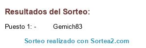 Lista de participantes: - Miguel_angel85, - Gemich83, - Javivm76, - Mangel_gc, - Soy_vinkingo, - Tortxu21, - Seione, - Superpatricia.