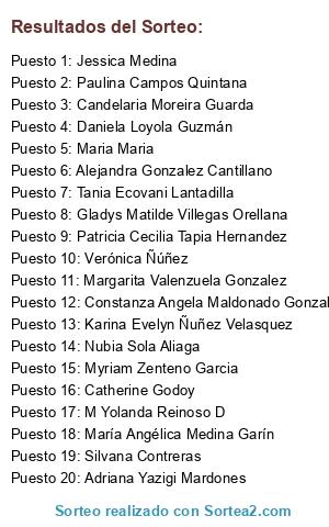 Lista de participantes: Yolanda Ines Montecinos Molina, Elizabeth Mundaca Rosales, Verónica Jaqueline Hidalgo Ogaz, Ximena Carmona, Mailen Plinchin, Angélica González, Francisca Muñoz Zúñiga, Nea Hermansen, Karina Evelyn Ñuñez Velasquez, Elizabeth Pivalica Moya, María Eugenia Espinosa Bacho, Mimi Cordova, Jerónimo Everardo Avila Fernández, Catherine Andrea Liberona Gonzalez, Silvana Contreras, Ana Miriam Valderrama Moya, Stella Mari Sanguedolce, Mónica del Pilar oyarzún, Fresia orellana, Marcela Alejandra Varas Ahumada, Mirna Elizabeth, Leonor Inés Andino Villar, Patricia Segura Muñoz, Eggda Pizarro, Alicia Gomez Mardones, Silvana Gajardo Vargas, Susana Sainz López, Florencia Garretón Edwards, Marcia Melo, María Verónica Zúñiga, Jacqueline Martínez, María Paz Lobos Cubillos, Javiera Silva Lobos, Clara Escobedo Echeverría, María Coñuen Antinao, Natalia Toro Toro, Libyan del Carmen Echeverría Sanhueza, Macarena Alvarado, Ximena Garrido Salazar, Susan Muñoz Pino, Jacqueline Balbotin Hermosilla, Victoria Valdes Garcia, José Galleguillos, Marcela Padilla, Marcela Arenas Peneipil, Inés Cecilia Faúndez Faundes, Isabelita Medina-Astorga, Gabriela Maurens Collao, Sandra Alvarado Antiman, Angélica Francisca Zuñiga Castillo, Ivonne Leiva Cantillana, Gladys Matilde Villegas Orellana, María de Lourdes Castillo, Tatiana Donoso, Ruth Silva, Viviana Alvarado Vera, Laura Rosa Hernandez Vicencio, Yasna Elena Diaz Diaz, Ariadna Villagra Cortes, Leslie De La Fuente, Mabel Martínez, Roxana Castro, Ema Flores Villalobos, Marion Ortega, Pamela Muñoz Jara, Karem Duque Carrasco, Edith Diaz, Carmen Lobos Lobos, Rosa Henriquez, Paulina Campos Quintana, Rosy Martinez Azocar, Vania Vasquez Mundaca, Anima Lista, María Nilo, Mariluz Vargas Cordova, Gilma Roa Azúa, Mercedes López Pazmiño, Adriana Gallegos, Anita Pinto Gaete, Victoria Pardo, Nubii Riquelme Villanueva, Monica Sepúlveda Oyarzun, Solange Santos, Lina America Araya Troncoso, Marcela Arias Suazo, Olivia Moraga, María Pía Olivares Romero, Fotmy Dinamarca El Salug, Cecilia Del Carmen Caipillan Chiguay, Susana Gaete, Joy Suárez, Carmen Luz Fredes Sotomayor, Ines Lizama Cabello, Tortas Sarita Pedidos, Margarita Valenzuela Gonzalez, Paola Bustos Catalán, Paula Francisca Retamal Chandía, Claudia Mayol Pauppein, Carmen Gloria Cuki Prado, Viviana Mytzi Gutierrez Lopez, Isabel Andrade, Yitza Sánchez Cantillana, Martina González Velasco, Claudia Rossel Navarro, Aurora Vasquez, Gladys Gomez Castillo, Patricia Cecilia Tapia Hernandez, Clau Knitting Academia de Tejido, Elizabeth Toro Papapietro, Ama Pola, María Reyes Espinoza, Valentina Oxiris Perez Duran, Ester Prado Bajar, Fefito Brinca, Renate Kessier, Dani Zelada Correa, Sandra Tobar Pasten, Andrea Ayavire Ramos, Mariluz Mira Rubio, María Elena Castro Manzor, María Inés Bravo Rivera, Lilian Rallin, Indómita Arte Textil, Pamela Arzola, Ximena Patricia Lopez Muñoz, Maka Cornejo, Valeria Torres Wacht, Paula Silva Jofre, Carola Jaque Droguett, Kekayun Taller de Arte Textil, Sonia Alvear Suitt, Yas Alexa, Yuvi del Pilar, María Cecilia Espinoza, Isabel Toro Mariangel, Carolina Andrea Barraza Canales, Veka Lunática, Paola Santander, Miriam Serrano Guerra, Catalina Paz, Verónica Rojas Orostegui, Pilar Eugenia Ruiz-Tagle Gomez, Mosaicosdel Elqui, Gilda Prida Ratto, Fresia María Trujillo Rodríguez, Ester Marchant Bravo, Cecilia Solis Meyer, Magaly Valeria Zamora Mundaca, Viviana Pinto León, Juany Ester Aspee Mondaca, Krlos Rene Ramírez Araneda, Verónica Ester, Monica Plate Angulo, Carmen Lucía Ugas Solis, Naysa Leal, Andrea Parra, Marian Brito, Myriam Jeria, Natalia Martínez Orellana, Gabriela Ramírez, Paola Vergara Muñoz, María Teresa Muñoz Ñanco, Julieta Meneses, Alejandra Gonzalez Cantillano, Fresia del Carmen Valdes Quiroga, Karina Muñoz Zárate, Candelaria Moreira Guarda, Paloma Pizarro, Gloria Herrera Fonseca, Lorna Toro Carrasco, Pamela Faundez Aguirre, Patricia Eugenia Vasquez Barbe, Izel Izel, Laura Susana Sepúlveda López, Mariana Almendras Jofre, Maria Maria, Ingrid Riveros Marquez, Brisas del sur, Claudia Fernandez Rivera, María Paz Gonzalez, Erika Paredes, Karen Rodriguez, Clara Riquelme Araya, Nurys Elizabeth Paredes Godoy, Jacqueline Lawrence, Olivia Plaza Miranda, Carla Bascou, Alejandra Campos Mattensohn, Daniela Quintas Dalla Villa, Andrea Arenas, Nancy becerra, Verónica Cerón Díaz, Verónica Ñúñez, Tania Ecovani Lantadilla, Monica Molina Ubilla, Leonardo Lobo Montecinos, Baratillo Baratísimo, Sabina Kifaki Díaz, Camila Nicol Loaiza Zapata, Gisela Escobar Ramírez, Catherine Godoy, Scarlett Cataldo Esperguez, Aspacia Valeska Aspée Santelices, Le Crochet Marcela, Macarena García Huidibro Iglesias, Claudia Sanchez Dobud, Carmen Gloria Gonzalez Muñoz, Elizabeth Noemi Barrios Mendoza, Hebra Heredera, maría Soledad Correa Cortez, María Isabel Lagos Muñoz, Adriana Yazigi Mardones, Dolly Abarzua, Yasna Barrera Carrasco, Nathalye Andrea Acevedo Acevedo, Paulina Chacón Farías, María José Campos S., Nubia Sola Aliaga, Isabel Basso Lorca, Marlena Vaquez, Jacqueline Suazo Suazo, Carmen Patricia Sanchez, Nene Solari Puebla, Leonor Díaz, Sylvia Patricia Espinoza Satibañez, Paulina Salas Serani, Verónica Salas, Javiera Carrasco Cancino, Margarita Aguirre Daza, Macarena Undurraga Izquierdo, Paulina Ugarte Brugues, Diana Diaz Ahumada, Margarita Alista Yañez, Clara Iriberry, Carola Novoa Rojas, María Antonia Correa Prado, María Fernanda Rivera Ardissone, María Angélica Medina Garín, Paola Sola, Maricarmen Caradeuc Lecierc, Amalia Moreno, Raquel Elena Salas Oyarce, Anysol Guerra, Piti Silva Anguita, Isabel Heiremans, Rossana Diaz, Lorena Kaempfer Mella, Lylian Alarcón, Indra Diaz Bravo, Jexy Morales Alvarez, Tita Sánchez Mena, Francisca Valdivieso, Florencia Puebla, María Ramírez Valenzuela, Ximena Ihnen Franke, Paulina Bartsch Bustos, Valeria Alejandra Oliva Sanzana, Camila Carrasco Suazo, M Yolanda Reinoso D, Edith Isabel Le