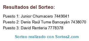 Lista de participantes: Junior Chumacero 7449041, David Renteria 7778378, Denis Raúl Tume Bancayán 7438070, Carlos Duque 7447194.