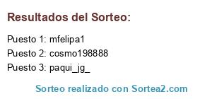 Lista de participantes: daniela.aoliveira (3), letigarcia97 (3), ulala_8 (1), carozp025 (3), luperper2 (8), bohoyocity0608 (1), bramarin2925 (2), arancha.am (1), esther_m_rivero (5), dukani_1982love (1), mariscal_1979 (2), blay27 (10).