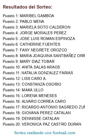 Lista de participantes: CATHERINE FUENTES, MARIA JOAQUINA SANTBAÑEZ ORRIGONI, LORENA MENESES, ALVARO CORREA CARO, GIOVANA PEREZ CATALAN, VERONICA PAZ CASTRO DURAN, PABLO MENA, MARIELA SOTO CALDERON, NATALIA GONZALEZ FARIAS, DENNISSE CATALAN, RODRIGO MUÑOZ, MARIBEL GAMBOA, RICARDO ANTONIO SAGREDO ZUÑIGA, ANITA SALAS ARAOS, JOSE LUIS ROMAN ESPINOZA, MARY DIAZ TOBAR, JORGE MORALES PEREZ, MAKA ULLO, PAOLA SOTELO, CONSTANZA OSORIO, FANY NEGRETE OROZCO, LISS CARO A., SOFII TORO PEREZ, .