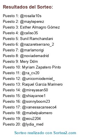 Lista de participantes: Ana Belen Aviles Martinez, Carlos Fernández, Carlos M Sanz, Esther Almagro Gómez, Lydia Med, MaBel Palomero, Mery Ddm, Myriam Zapatero Pinto, Patricia Rodríguez Pereira, Raquel Calvo Gonzalez, Raquel Garcia Marinero, Rima Mencar, Sunil Ramchandani, Tito M. Sanz, @laurafdez82, @serxuv, @piruletadesalmon_, @unicorniodemiel_, @mariasturias_, @maria_toha2012, @mariaserrano_1122, @rosalia10s, @elsonidodeturisa, @ros_coco10, @missserrano_, @nazaretserrano_2, @aifosmo, @caliso35, @carpe.diem7422, @sancho_mejo, @mabelpalomero, @orte2204, @andrea8435990, @gumylo2000, @lasirenita2274, @_.kangaroo315._, @bethortegaurbano, @soguu22, @miguelmendez000, @manoli_montarroso, @ra_cv20, @mireyasan50, @paquicose, @jimenezlioba, @astronomoking, @instabuco, @oseahello93, @sonia.pereda, @fernando0394, @raquelgarciamarinero, @miriam.infantil.prof, @eou2204, @avilesmartinezanabelen, @estheralmagrogomez, @shiayanoe1, @steal69, @lydia_med, @mar59001, @anthonyleon852024, @antoniopica2, @mayteperez, @sandra.llopez, @vanessacanseco4, @indygrillo, @sonnyboom23, @b.c.h74, @lauracg76, @prodriguezpereira, @raquelrp2529, @elenass86, @acastanon2020, @marlamorigi, @noviademadrid, @marximr.