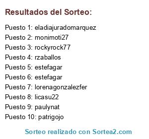 Lista de participantes: monimoti27, rockyrock77, patrigojo, lorenagonzalezfer, estefagar, estefagar, rzaballos, paulynat, eladiajuradomarquez, licasu22.