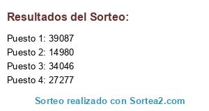 Este sorteo ha sido certificado por Sortea2. Sortea2 garantiza que: