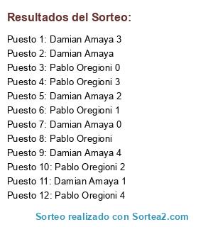 Lista de participantes: Pablo Oregioni, Damian Amaya, Pablo Oregioni 0, Damian Amaya 0, Pablo Oregioni 1, Damian Amaya 1, Pablo Oregioni 2, Damian Amaya 2, Pablo Oregioni 3, Damian Amaya 3, Pablo Oregioni 4, Damian Amaya 4.