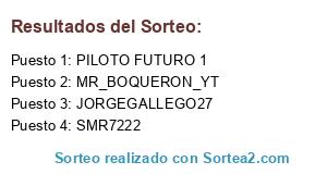 Lista de participantes: JORGEGALLEGO27, SMR7222, MR_BOQUERON_YT, PILOTO FUTURO 1.