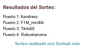 Lista de participantes: Robustianoma, Tikilo69, Aandress, F1M_minillilli.