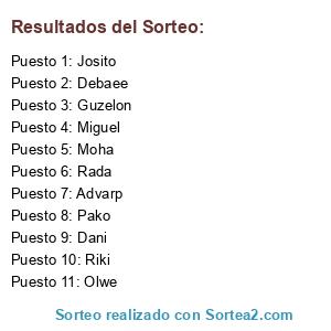Lista de participantes: Pako, Dani, Guzelon, Miguel, Olwe, Josito, Riki, Advarp, Moha, Rada, Debaee.