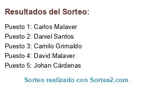 Lista de participantes: Carlos Malaver, Camilo Grimaldo, David Malaver, Daniel Santos, Johan Cárdenas.