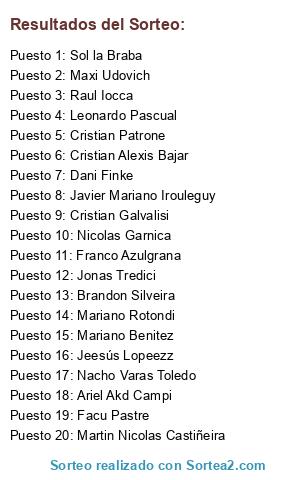 Lista de participantes: Nacho Varas Toledo, Ariel Akd Campi, Javier Mariano Irouleguy, Sol la Braba, Jonas Tredici, Cristian Galvalisi, Cristian Alexis Bajar, Raul Iocca, Facu Pastre, Cristian Patrone, Dani Finke, Leonardo Pascual, Mariano Rotondi, Maxi Udovich, Brandon Silveira, Mariano Benitez, Nicolas Garnica, Martin Nicolas Castiñeira, Franco Azulgrana, Jeesús Lopeezz.