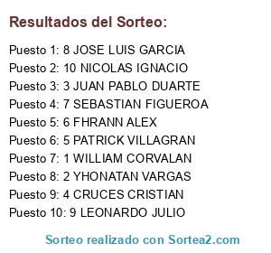 Lista de participantes: SEBASTIAN FIGUEROA, WILLIAM CORVALAN, FHRAN ALEX, LEONRADO JULIO, JUAN PABLO DUARTE, DIEGO TORRES, PABLO IGNACIO, JOSE CARLOS, JUAN ANDRES, PATRICK VILLAGRAN.