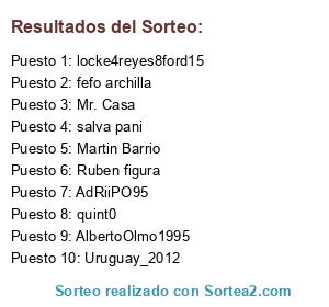 Lista de participantes: AlbertoOlmo1995, locke4reyes8ford15, salva pani, Ruben figura, Uruguay_2012, Martin Barrio, fefo archilla, quint0, AdRiiPO95, Mr. Casa.