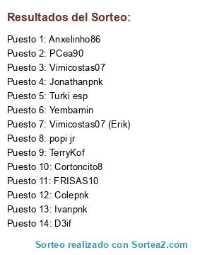 Lista de participantes: Jonathanpnk, TerryKof, Turki esp, Yembamin, PCea90, Ivanpnk, Colepnk, Vimicostas07, Vimicostas07 (Erik), Anxelinho86, Cortoncito8, D3if, FRISAS10, popi jr.