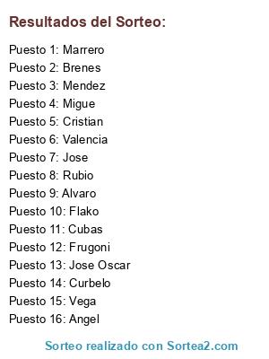 Lista de participantes: Alvaro, Cristian, Jose Oscar, Jose, Valencia, Marrero, Frugoni, Rubio, Vega, Cubas, Flako, Angel, Brenes, Curbelo, Migue, Mendez.