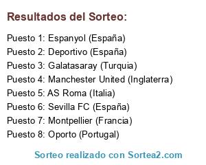 Lista de participantes: AS Roma (Italia), Deportivo (España), Espanyol (España), Galatasaray (Turquia), Manchester United (Inglaterra), Montpellier (Francia), Oporto (Portugal), Sevilla FC (España).