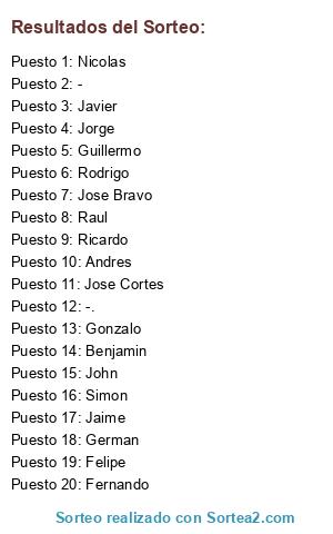 Resultados del sorteo: