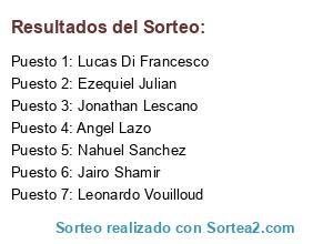 Lista de participantes: Jairo Shamir, Angel Lazo, Leonardo Vouilloud, Lucas Di Francesco, Ezequiel Julian, Nahuel Sanchez, Jonathan Lescano.