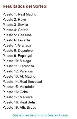Sorteo Equipos Liga BBVA